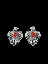 Navajo Thunderbird Overlay Post Coral Earrings is backordered and will ship as soon as it is back in stock.