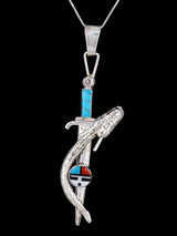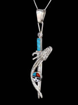 Zuni Inlay Turquoise and Coral Kolowisi Pendant